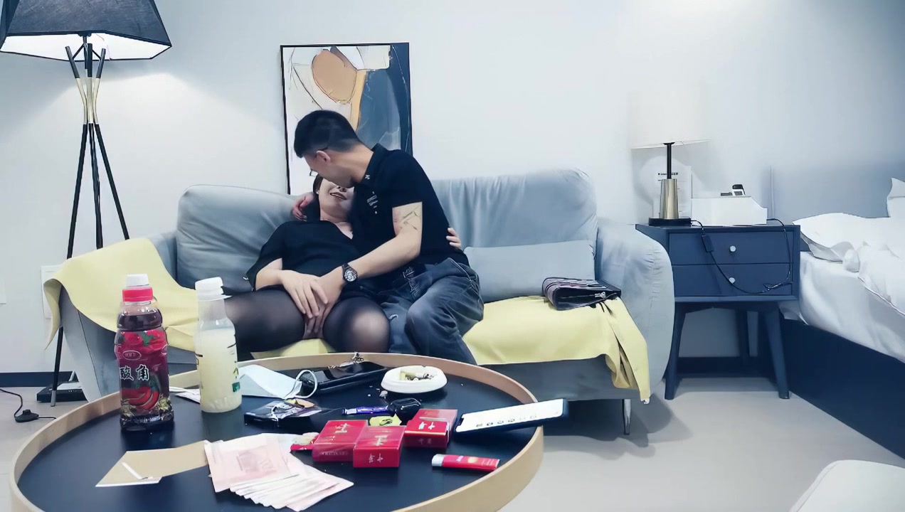 高筒袜加黑丝高更鞋加修身的开叉旗袍简直太骚 按到在沙发上直接后入狂操