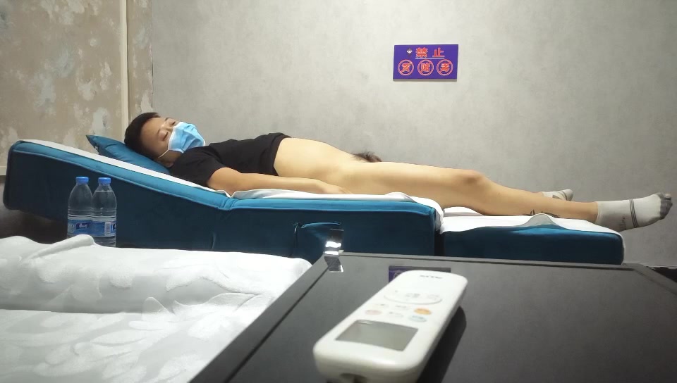 半夜约外围酒店开房身材苗条条纹衫长靴酒吧女服务员被故意把套子射里面了
