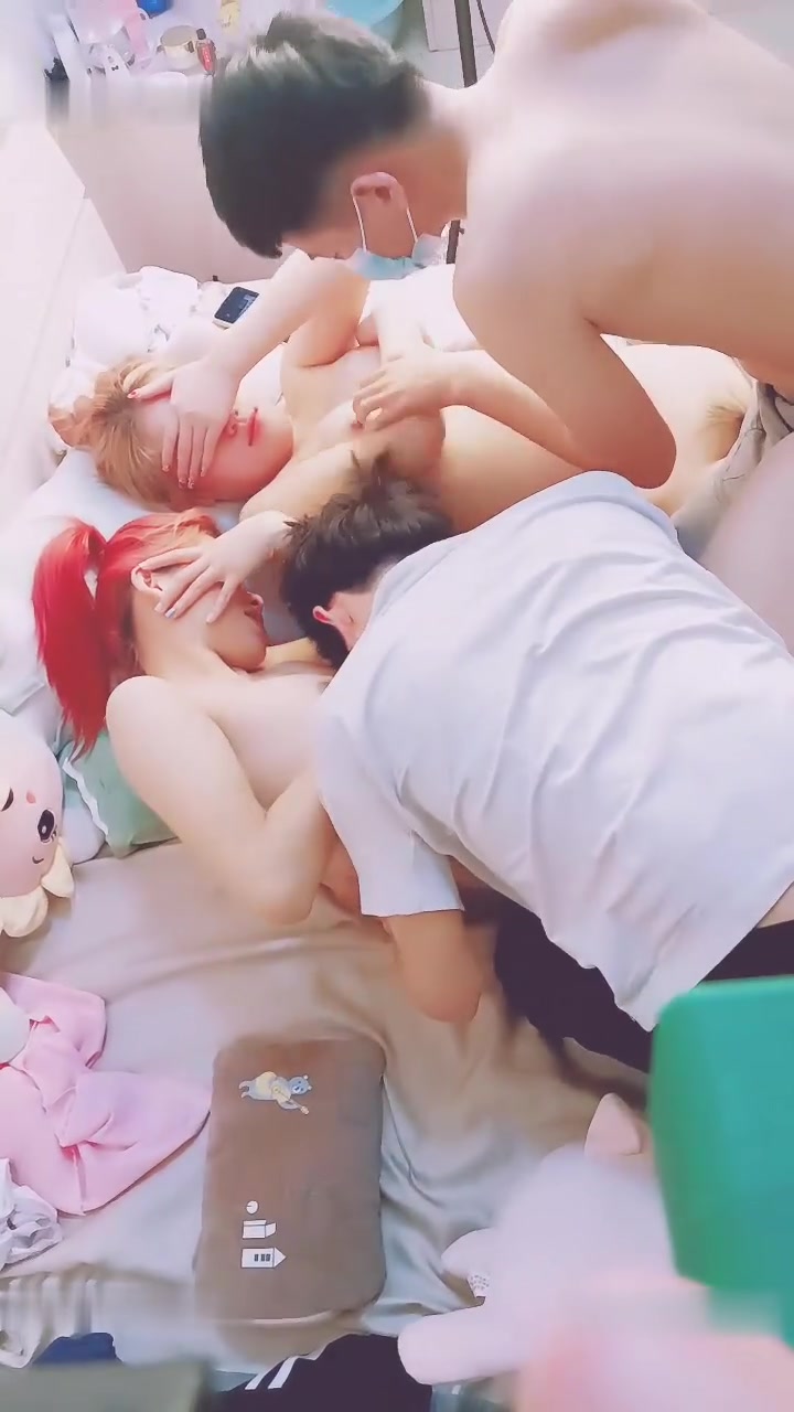 幸福老哥天天搞妹子顶不住找两好友4P,超级嫩00后妹子,一人一个扒掉内裤,骑乘后入一起操,扶着屁股猛顶。