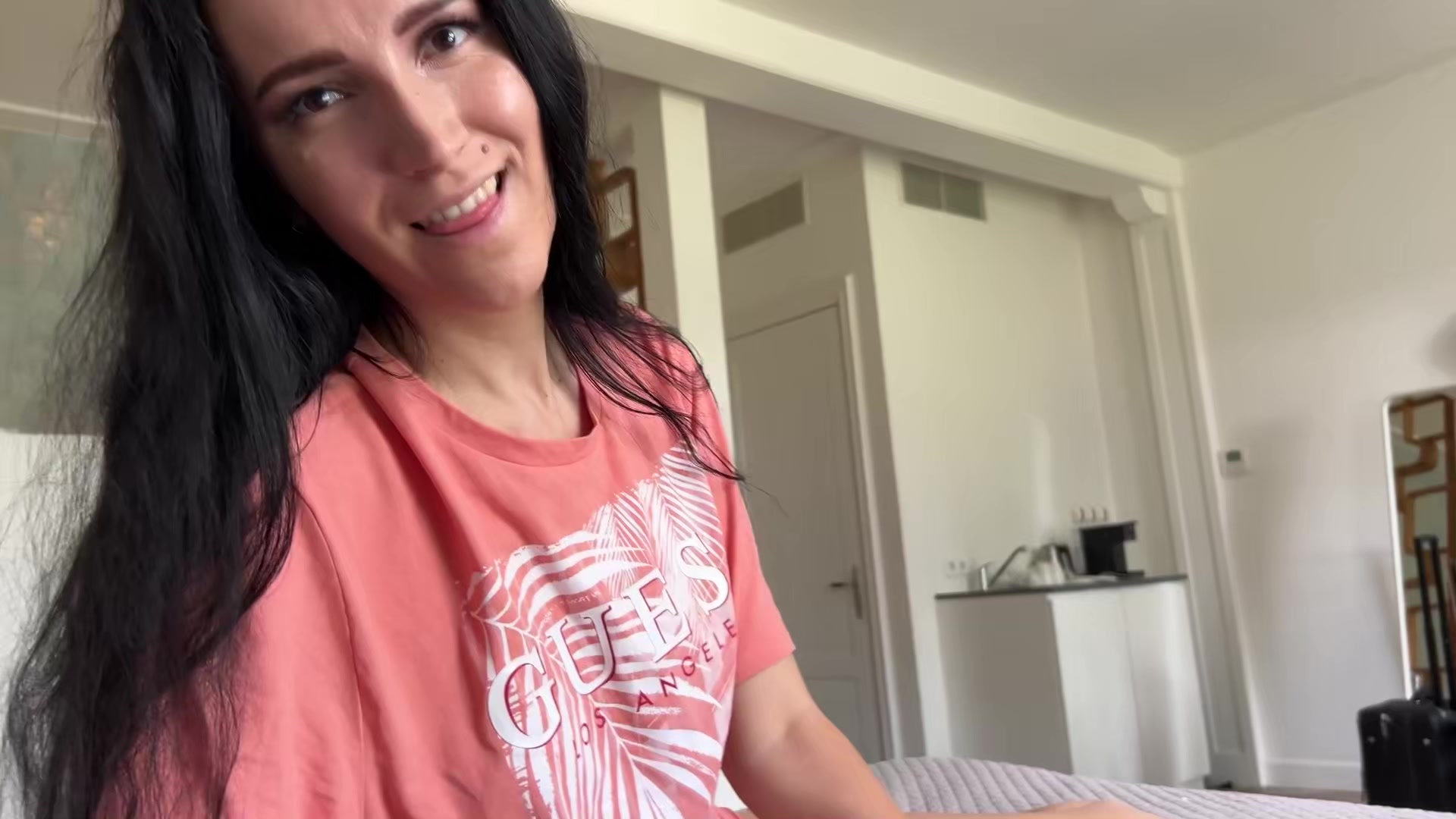 性感金发女郎饥渴自慰试图引起她情人的注意