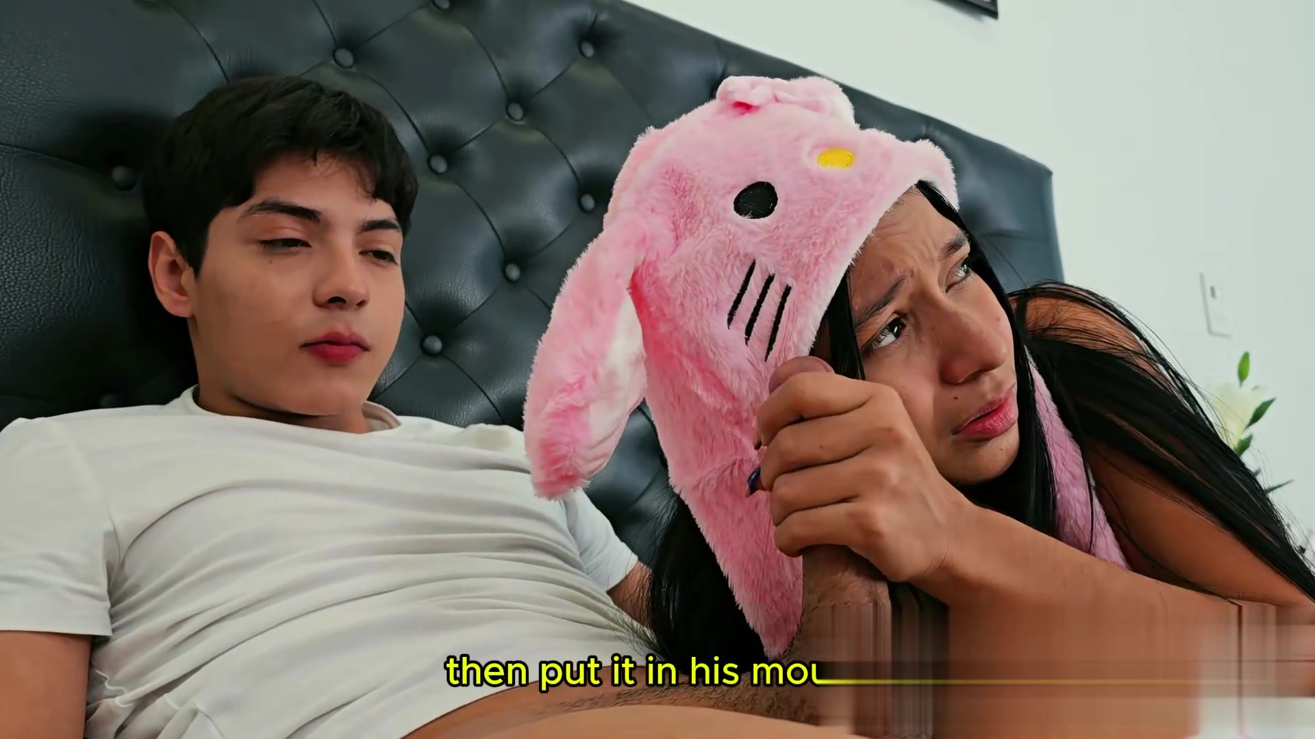 我的继兄弟把他的鸡巴插在我的屁股上,以克服我对性爱的恐惧。