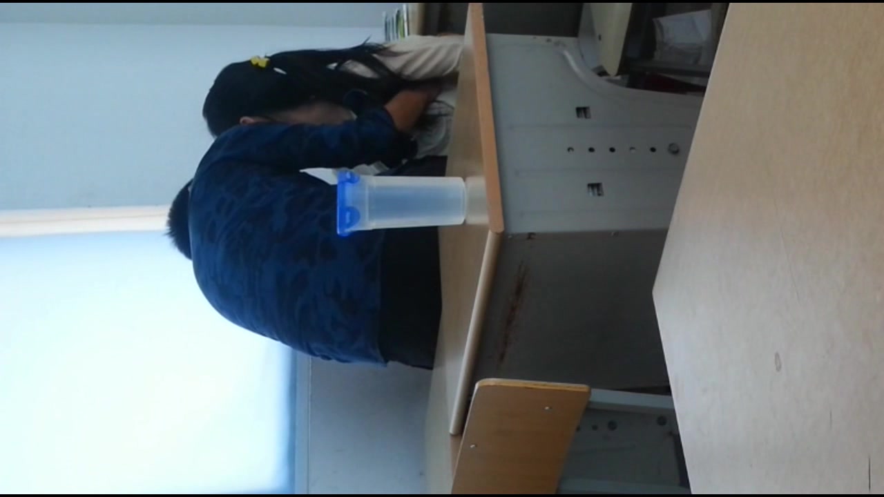 某镇上学校的学生情侣在教室内露脸自拍吃禁果,白嫩的小女友很害羞,被激情后入啪啪啪