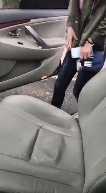开车接女朋友真饥渴大白天的让男友把车停在路边车震