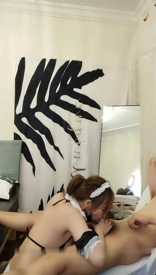 情趣女仆白皙美乳妹子和炮友双人啪啪 口交椅子上位骑乘床上性感屁股上下套弄。