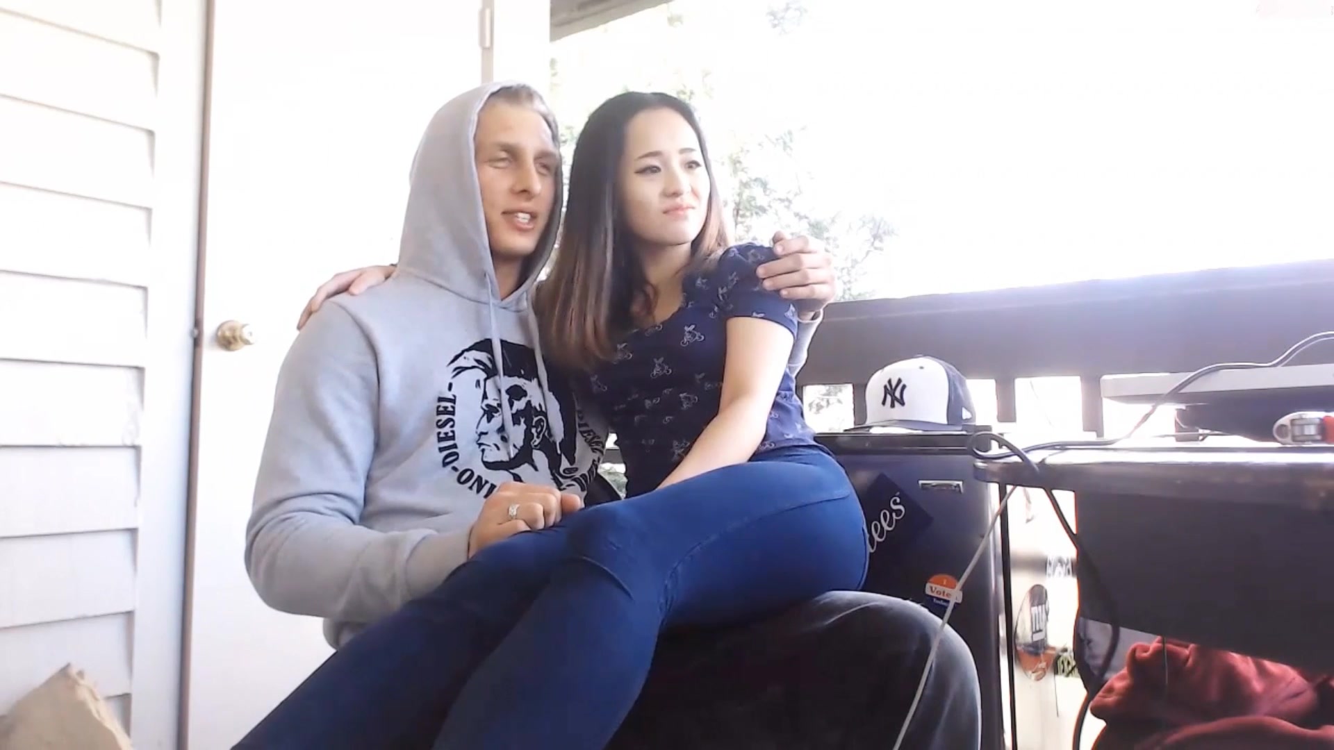 清纯漂亮高颜值混血亚裔美女与ROCK大屌男友阳台上啪啪啪白带还挺多的