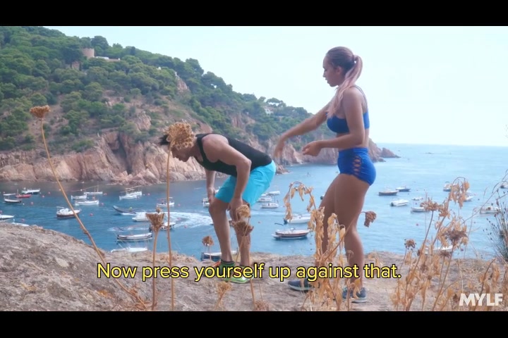 跟女伴一起去海边爬山锻炼到了山上玩起了野战