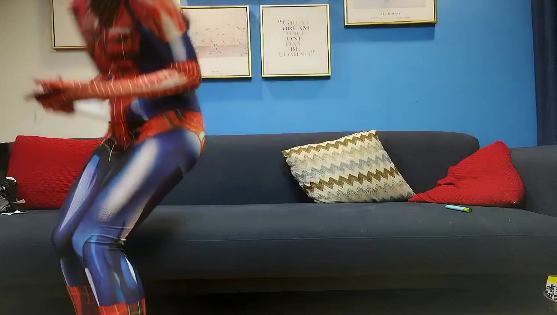 极品外围小姐姐被要求穿上蜘蛛侠情趣装,沙发上抠粉嫩鲍鱼口交